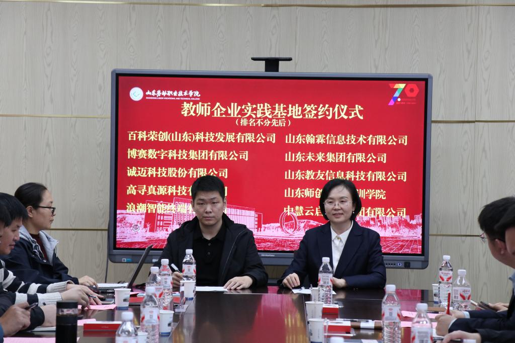 北京白海豚科技有限公司代表张孟秋向学院捐赠了价值十万元的设备;高寻真源科技有限公司、诚迈科技(南京)股份有限公司、山东未来集团有限公司等九家企业先后与信息工程系完成了学生校外实训基地与教师企业实践基地的签约,进一步夯实了校企协同育人平台,为学校七十周年校庆献上了一份贺礼。
